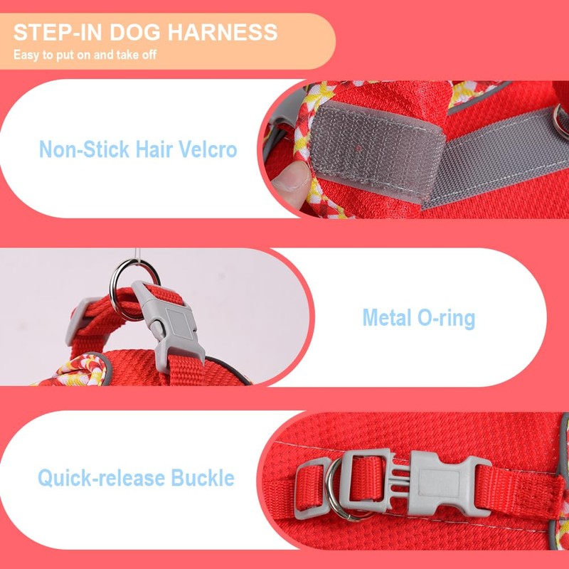 - 【Easy to Use】Puppy harness for small dogs is adopted with step-in design,It is very easy to put on and take off with fast-release buckle,Put the dog's front feet into the holes,close the magic tape fastener,then snap the buckle and attach the leash enjoy a great walking with your dog!