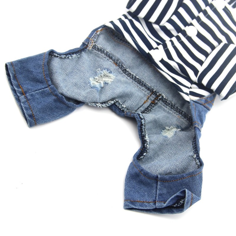 - 【RETRO JEANS STYLE】This jeans onesies are available with 2 colors ,black white stripe and red white stripe.The cute dog clothes are both suitable for boys and girls.Make your lovely fur baby cool and adorable.