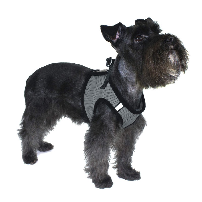 Dogline Boston Step in Mesh Dog Harness with Nose Work Patch No Choke Pet Vest Soft Gentle Padded Chest Halter for Puppies Small Medium and Large Dogs 21 to 24 inches Girth Grey
