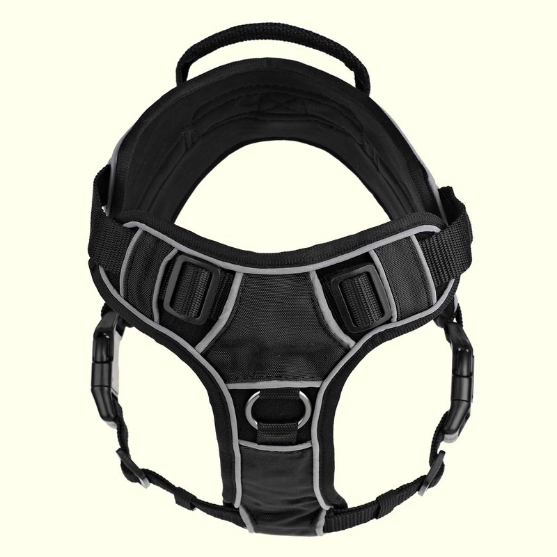 - Patented Easy Control Harness distributes pressure evenly across your dog’s torso to prevent pulling and choking. Fully adjustable at the chest and neck, the harness provides a customized fit for the ultimate comfort and control of your dog breed.