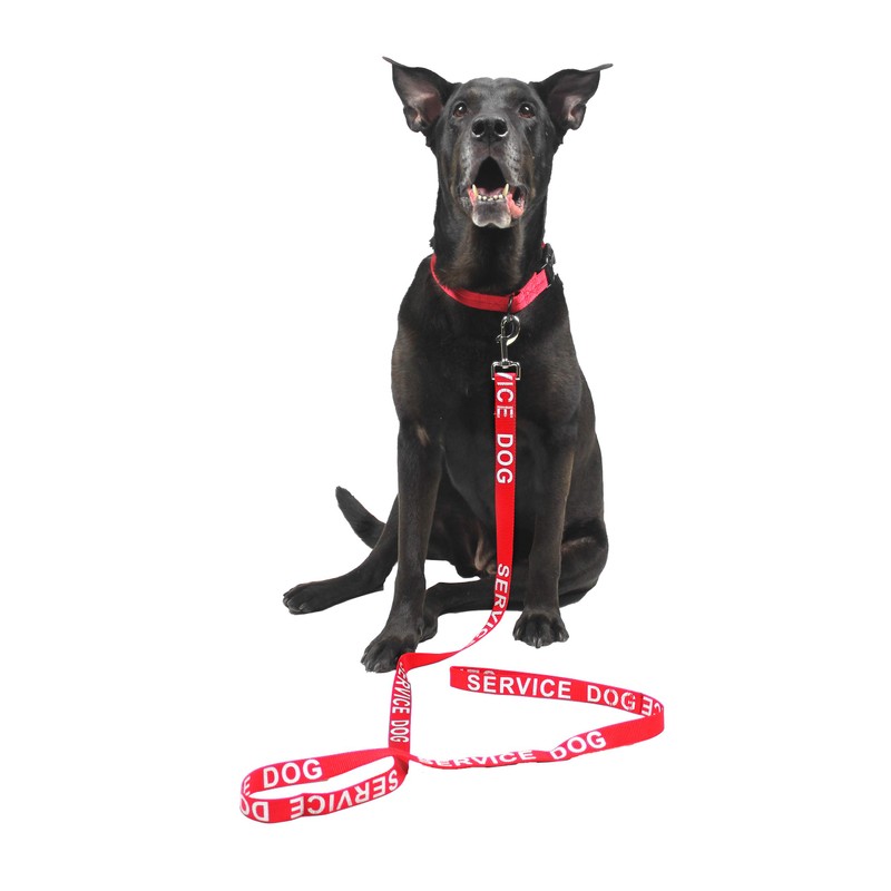 - Find the Perfect Size and Color. Our Service Dog leashes come in 4FT and 6FT length. 1” and 5/8” widths are available in black or red