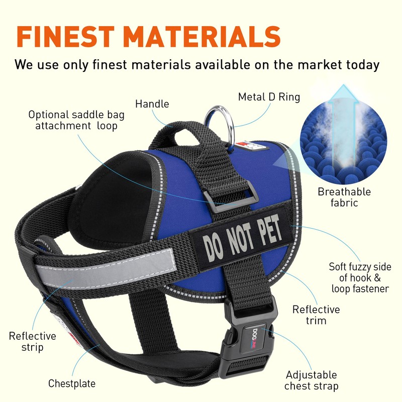 Dogline Vest Harness for Dogs and 2 Removable Do Not Pet Patches, Large/28 to 38", Blue