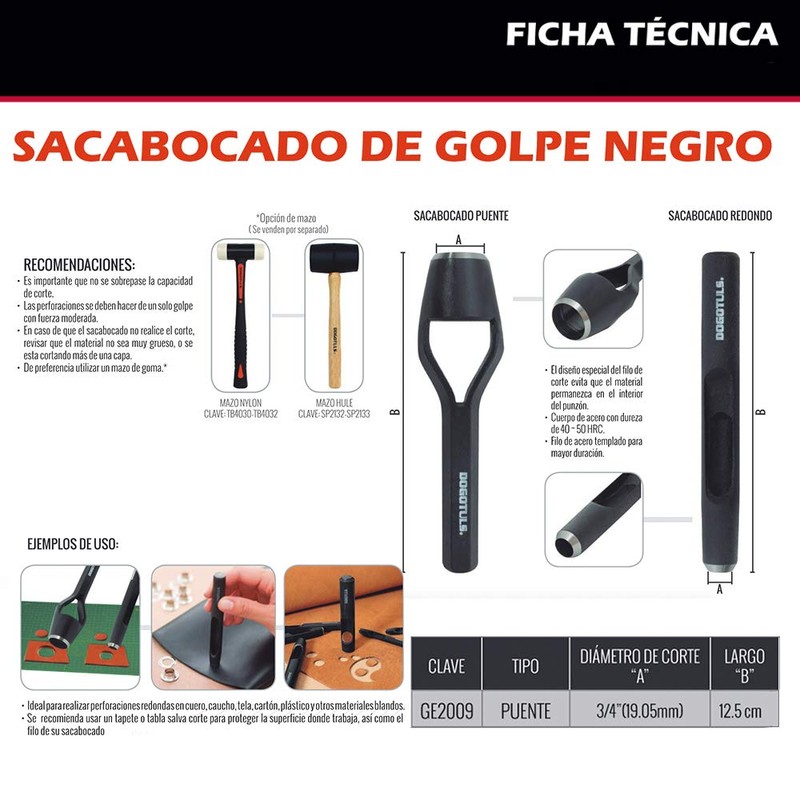 DOGOTULS Sacabocado Puente 3/4" GE2009 Negro de Acero