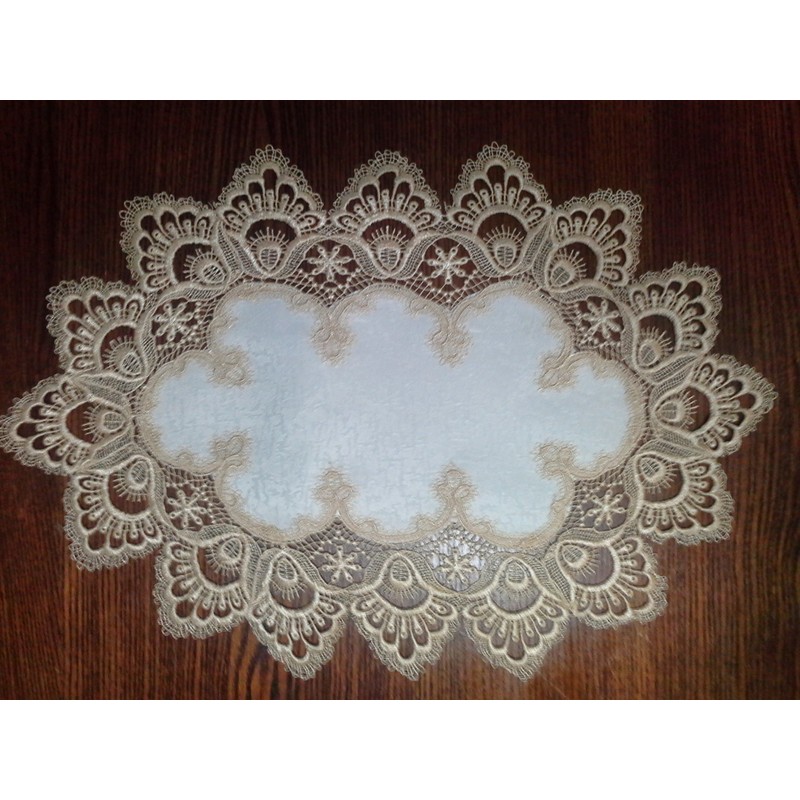Doily Boutique Place Mats Set of 2 with European Gold Lace on Antique White Material Size 12 x 18 inches