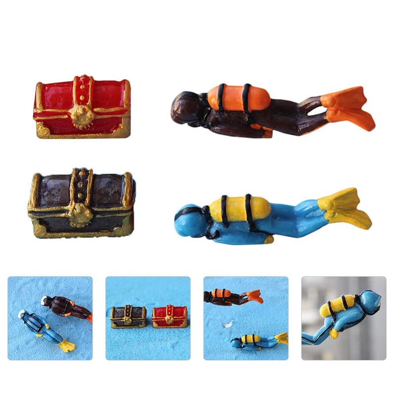 DOITOOL Miniature Diver Figures Aquarium Decoration Resin Mini People Treasure Boxes Model DIY Epoxy Resin Figures Fish Tank Decoration 4 Pieces Photography Sand Table Model Building Micro Landscape