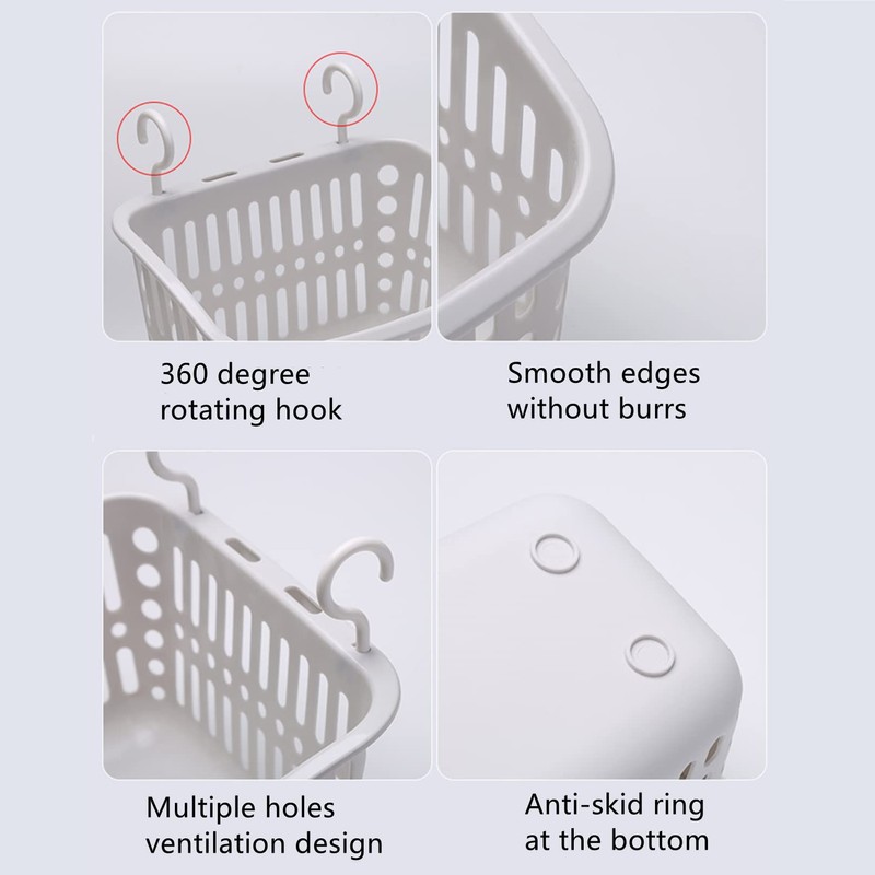 Doitxue 3PCS Plastic Hanging Baskets for Shower, Hanging Basket Organizer with Hooks, Rectangle 10.6Inches Small Hanging Storage Basket (Beige)