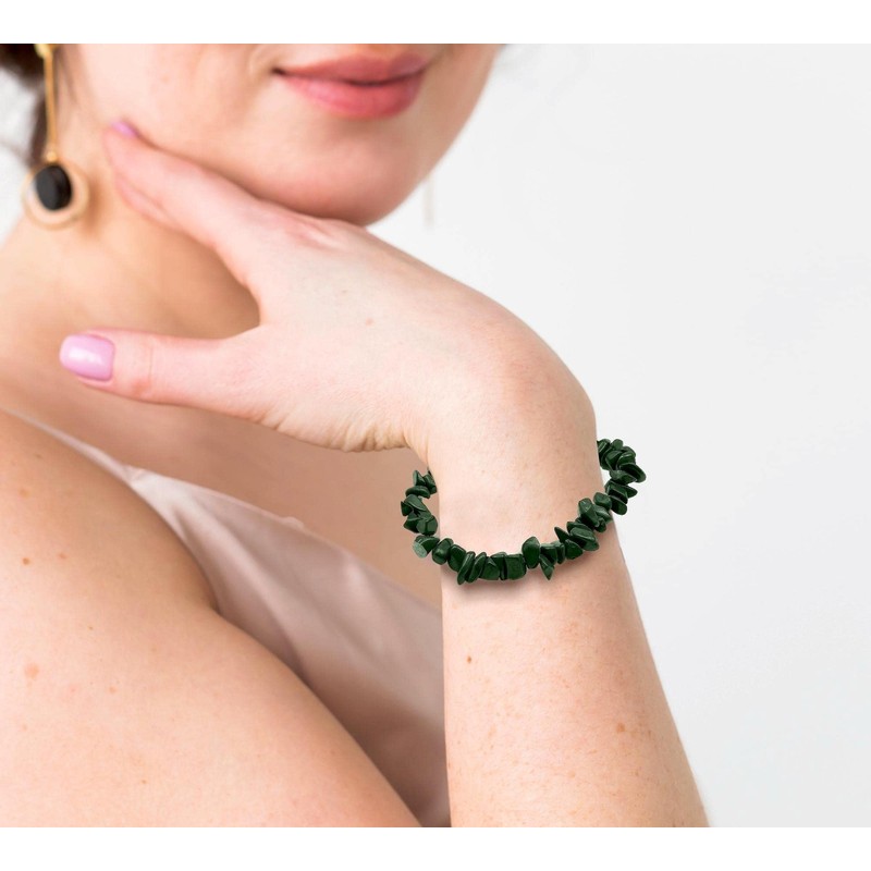 DOJA Barcelona Green Quartz Chip Bracelet Green Quartz Natural Stone Elastic Bracelets Natural Minerals Energy Stones Healing Crystals Healing Stones Men and Women, Stone