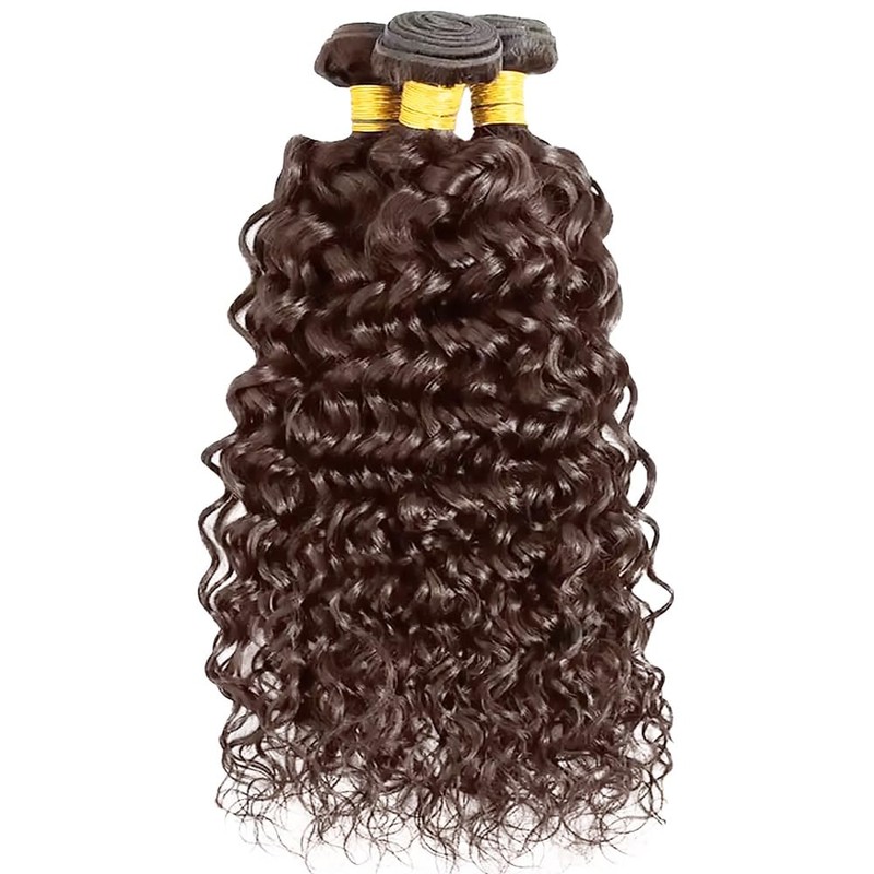 Dokksiiia 3 Bundles (28/30/32 Inch) Water Wave Human Hair #4 Dark Brown Bundles - Brazilian Double Weft, Rich Chocolate-Brown Water Curly Weave, Soft & Thick for Black Women