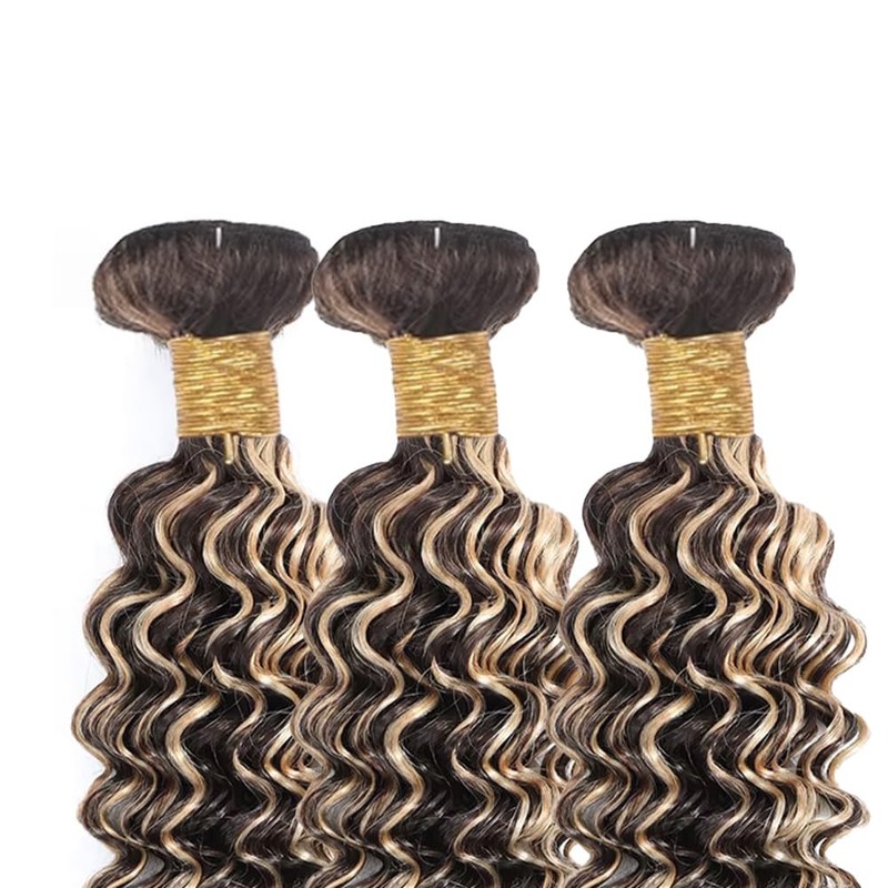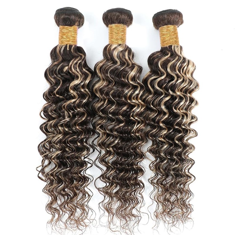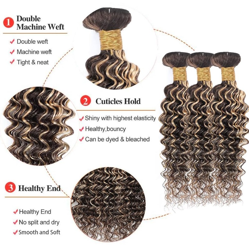 - Hair Bundles Material:P4/613 Highlight Deep Wave Hair Bundles 8A Grade Brazilian Human Hair,Healthy and Strong,Soft and Silky Human Hair Bundles