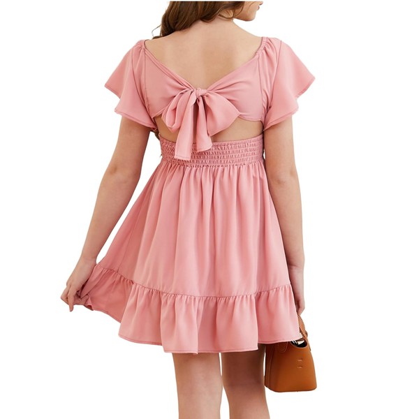 DOKOTOO KIDS Girls Special Occasion Dresses Summer Back Bow Tie Cute Dress Pink 12-13 Years Old