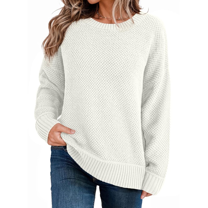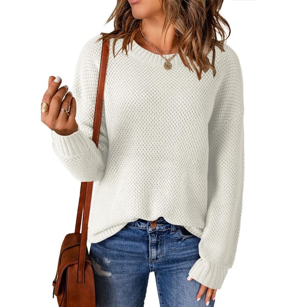 Dokotoo Sweaters for Women Crewneck Ribbed Knit Waffle Pullover Fall Clothes 2025 Fashion Clothing Long Sleeve Shirts Casaul Cozy Chunky Sweaters White Medium