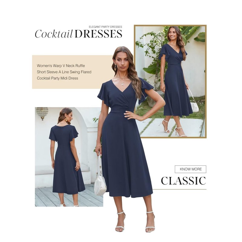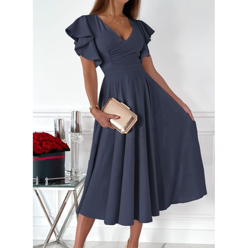 - Cocktail Dresses / Wedding Guest Dresses For Women / Ruffle Sleeve / V Neck / Zipper / Elastic High Waist / Midi Length / Evening Dresses For Women / Ball Gown For Women / Perfect For Spring, Summer, Fall