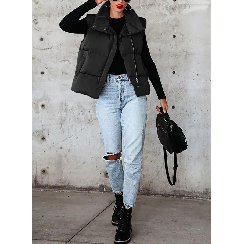 - Features: Two Pockets, Loose Relaxed Fit, Front Zipper Closure, Women Winter Crop Vest, Stand-up Collar, Sleeveless Quilted Vest,