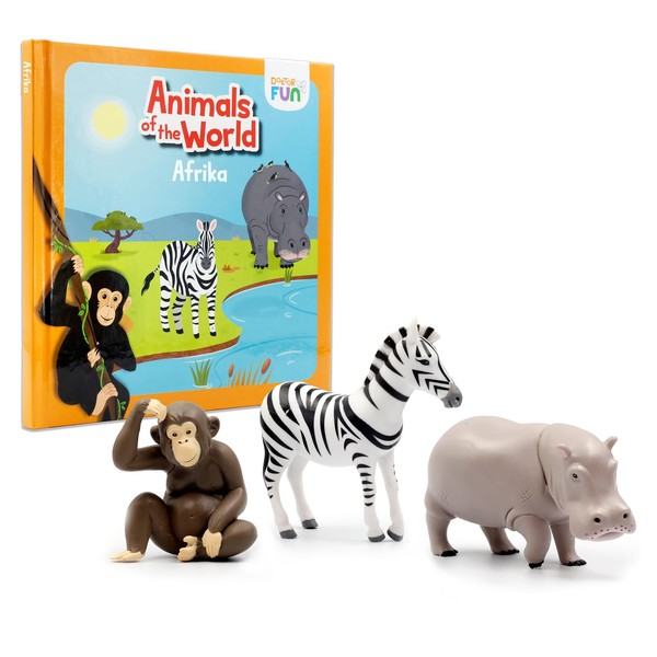DOKTOR FUN - Animals of the World - Africa - Book with Animal Figures - Includes 3 Figures - 3 Stories with Games and Curiosities about Each Animal - Children from 3 Years - Quality Figures