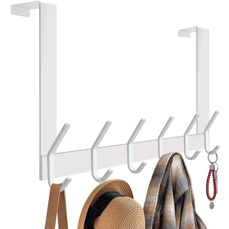 DOKU HOME DOKU Over The Door Hook, Heavy Duty Over Door Hanger Holder for Coat Robe Hat Clothe Towels Hanging, Bathroom Organizer Towel Rack 12 Hooks, White
