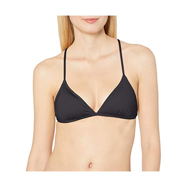 Dolce Vita Women's Solid Bikini Top with Beaded Lattice Back, Black, L