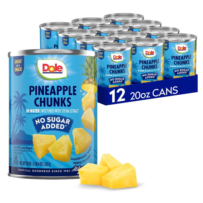 - CONVENIENT CANNED PINEAPPLE: Save time on food prep with our delicious pre-cut Dole Pineapple Chunks - no trimming, slicing, or core removal needed to enjoy this juicy pineapple that was handpicked when perfectly ripe