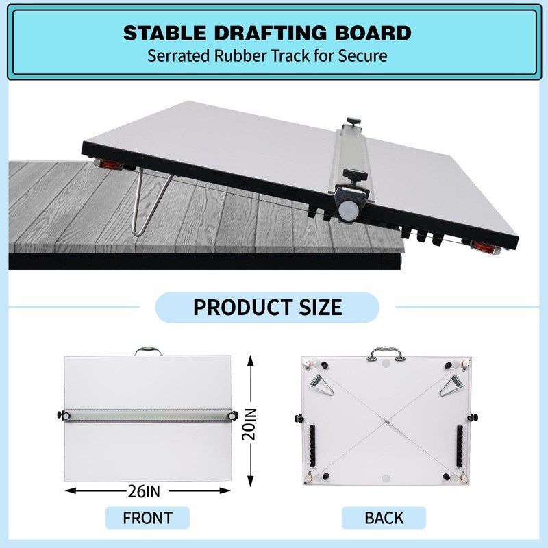 - Stable Drafting Board: Equipped with a serrated rubber track, this drawing board ensures exceptional stability, allowing you to pull it closer and adjust the angle on table for a comfortable drawing angles. The sturdy design provides a reliable and steady surface, perfect for all your artistic creations and technical drawings.