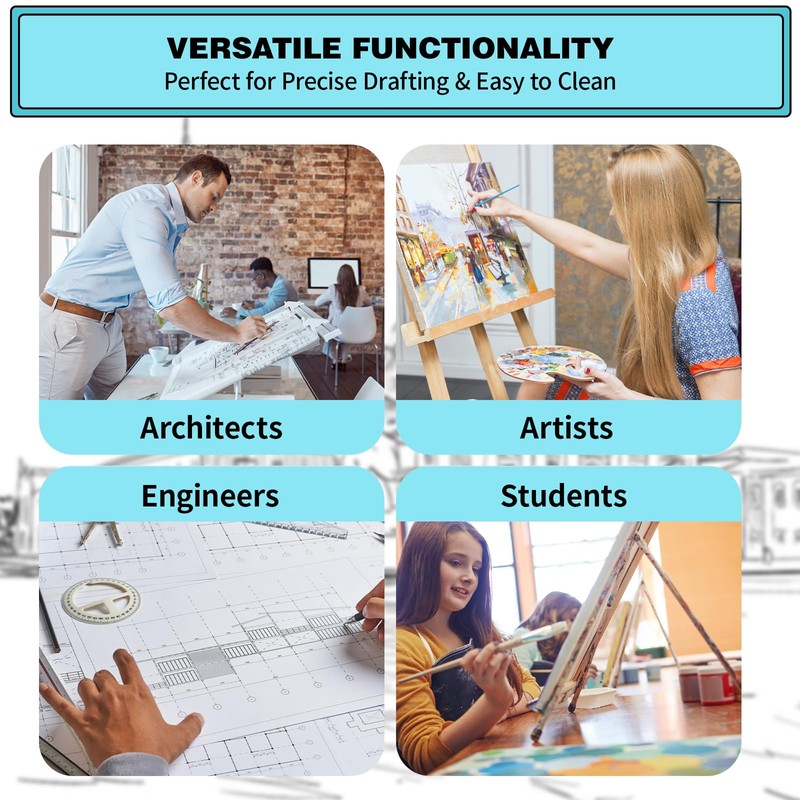 - Versatile Functionality : The Drafting Board is designed to meet the needs of professionals, students, and hobbyists alike. Whether you're an architect drafting technical blueprints, an artist sketching creative ideas, or a student working on school projects, this versatile drafting board is the perfect tool for your needs.