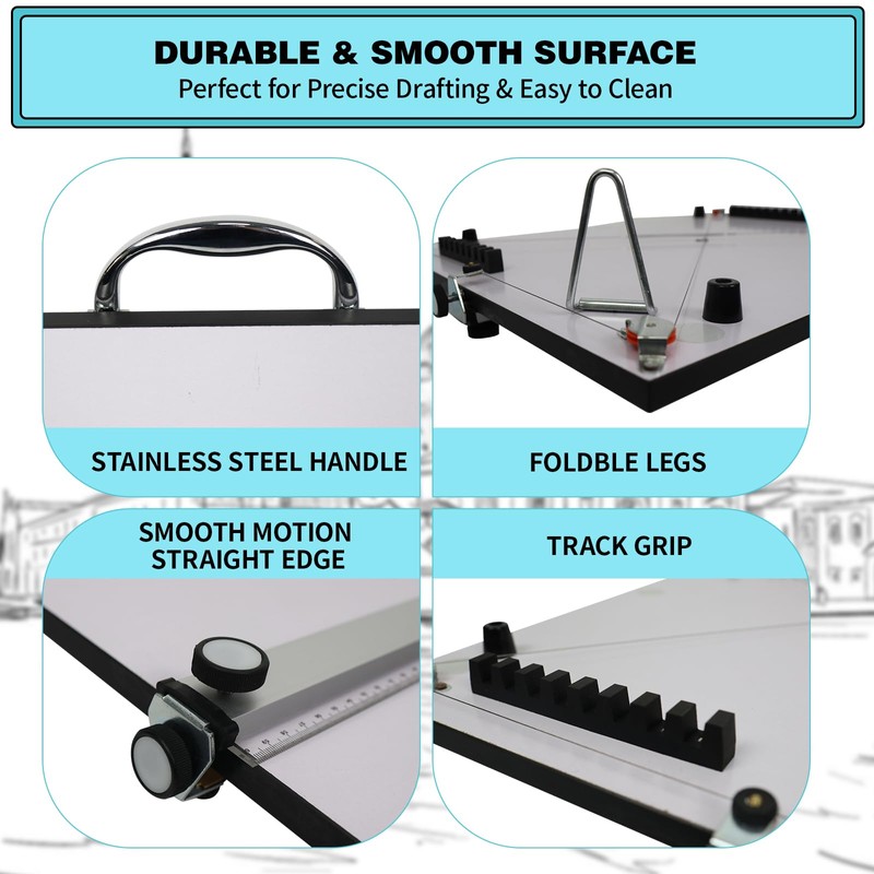 - Lightweight & Portable Design: Made with 17mm laminated nonporous melamine, this portable drafting board is lightweight yet durable, making it easy to carry anywhere.Designed for daily use, perfect for architects, artists, engineers and students on the go.