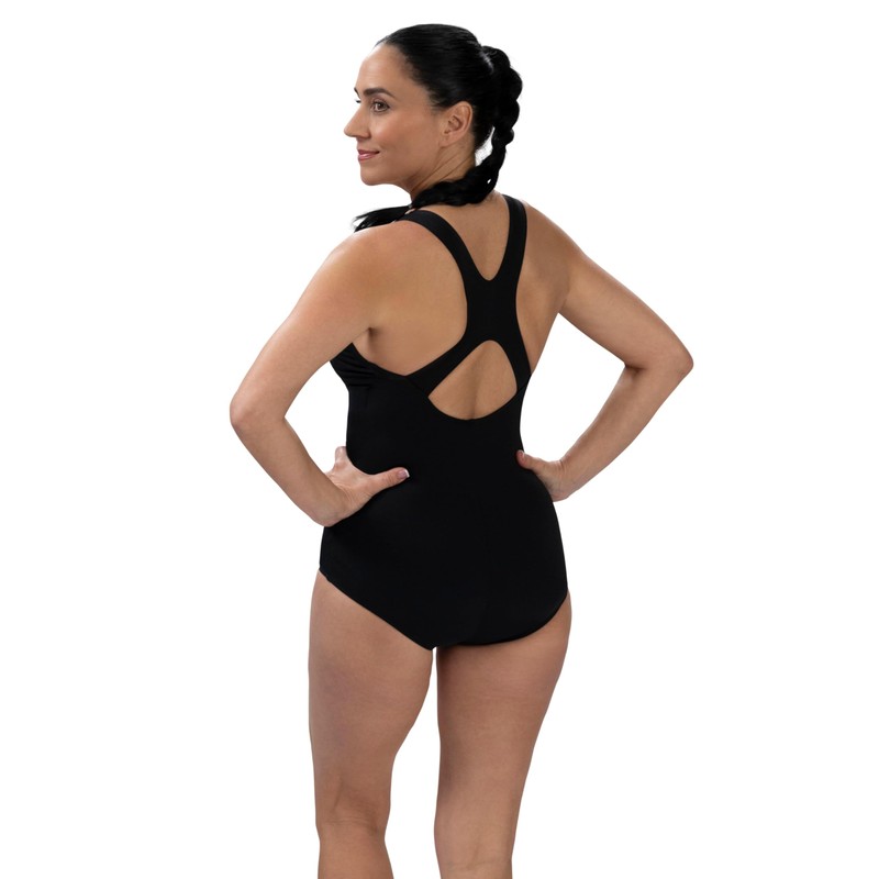 Dolfin Aquashape Conservative Lap Swim Suit | Chlorine-Resistant Women's One-Piece Training Swimsuit with Built-in Shelf Bra | Ideal for Lap Swimming, Water Aerobics, and Aquatic Fitness (Black, 10)