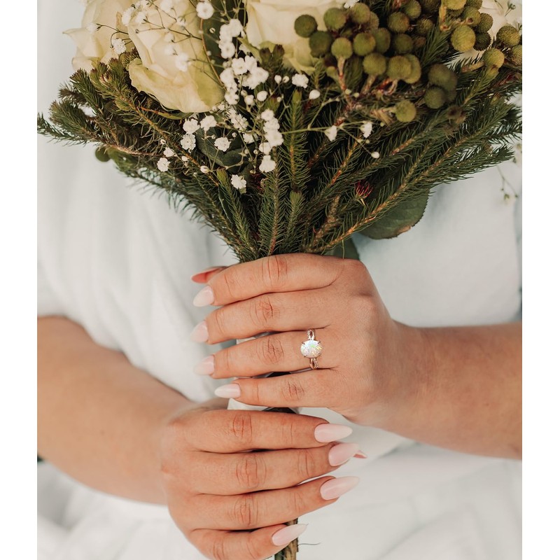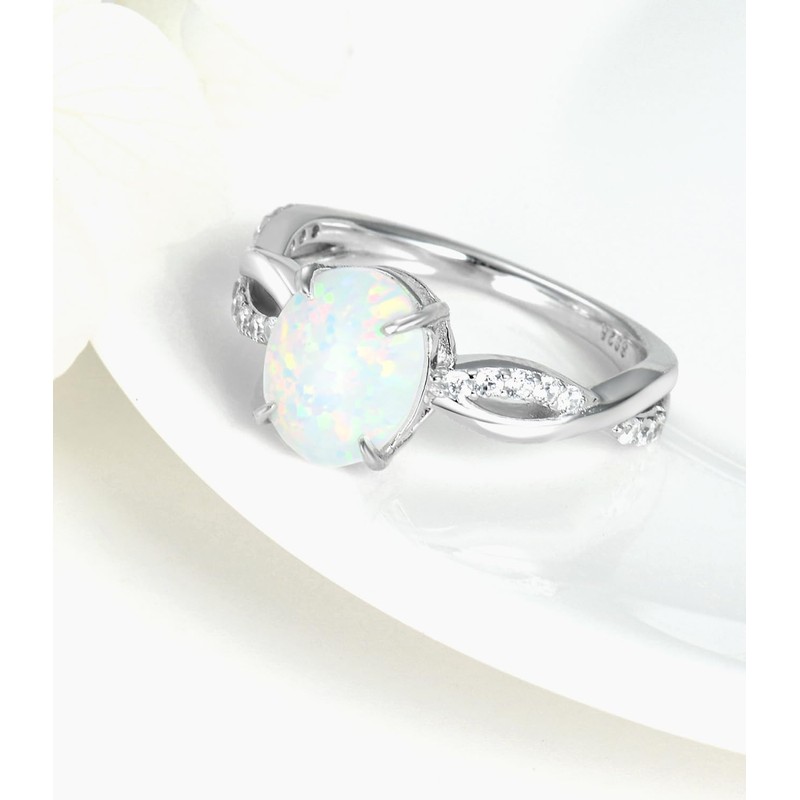 - Material:The white opal shows different brilliance under light, surrounded by sparkling zircons, which is very eye-catching. The metal part of the ring is made of 925 sterling silver, and the surface is plated with white gold.