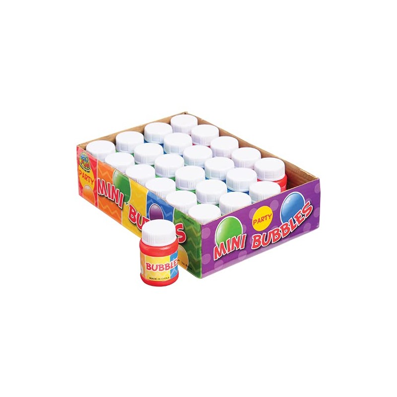 Everyone can join in the party with these mini bubbles. Bubbles add excitement to outdoor play, weddings, birthday parties, picnics, and much more! Add these bubbles to your pinata filler, goody bag filler, reward bucket, and more. 24 Pieces per unit.