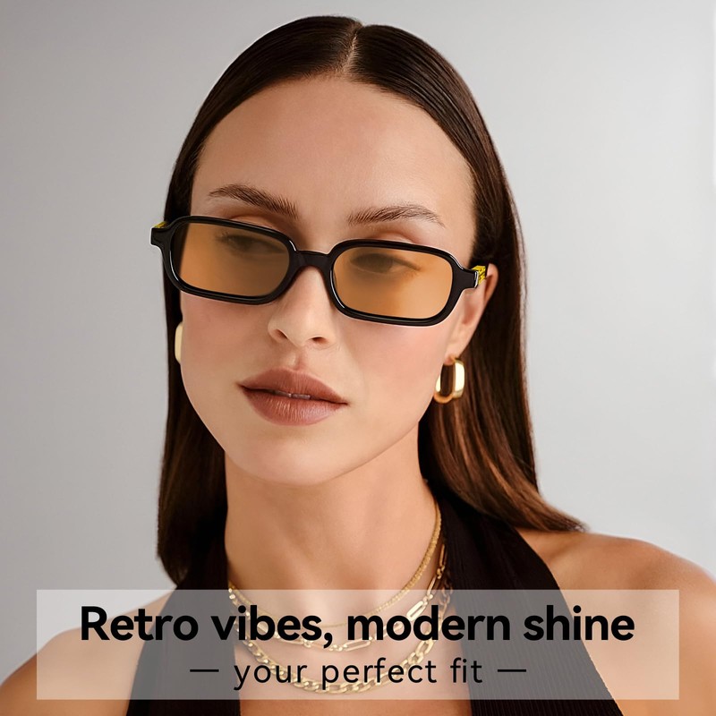 - Stylish and Unisex Design: These sunglasses feature a sleek, small rectangular frame that brings a unique, retro Y2K vibe to your look. The trendy design is perfect for both women and men, making it an ideal accessory for anyone looking to embrace the bold fashion trends of 2025 while maintaining a timeless edge. Whether you're dressing up for a rave or a casual day out, these sunglasses will elevate your style.