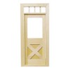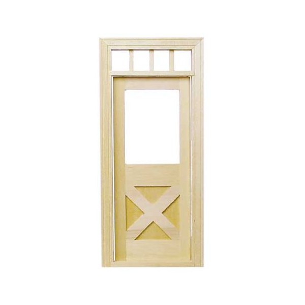 For your dollhouse. Exterior door with acrylic window, mullions and four-section transom with removable acrylic. No interior trim.3 1/2"W x 7 3/4"H; fits opening 3 1/16"W x 7 9/16"H x 3/8"D
