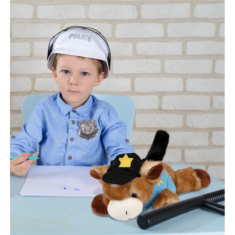 - IDEAL USE FOR THE SOFT POLICE STUFFED ANIMAL - Surprise your loved one with his new partner—the adorable lying brown donkey police plush toy! Sending a backup police donkey plush to your little one is a great way to make playtime more fun. Use the cute police plush animal to teach kids to respect police officers and be comfortable around them. Perfect gift for kids who love to pretend play as cops.
