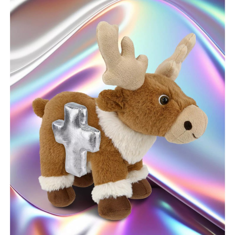 DolliBu Standing Reindeer Stuffed Animal with Silver Cross Plush – 11 Inches