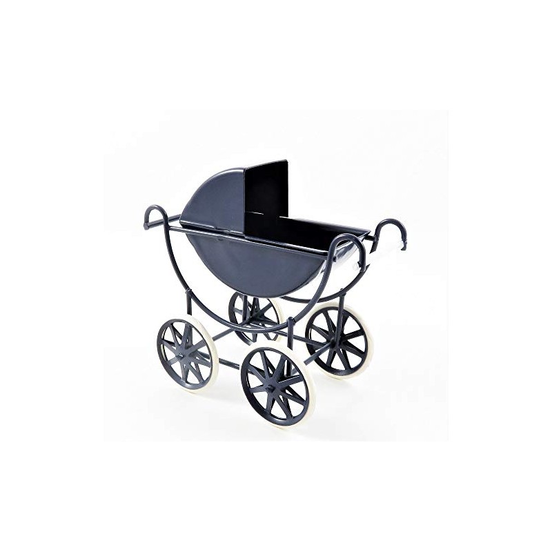 Dolls House Navy & White Baby Pram1:12 Scale Old Fashioned Nursery Furniture