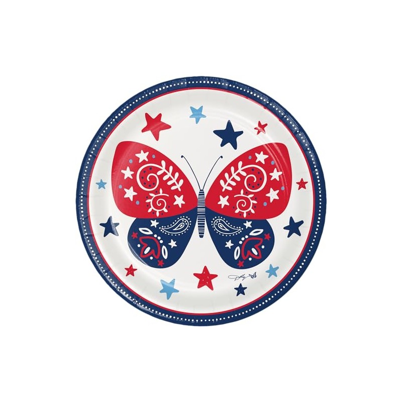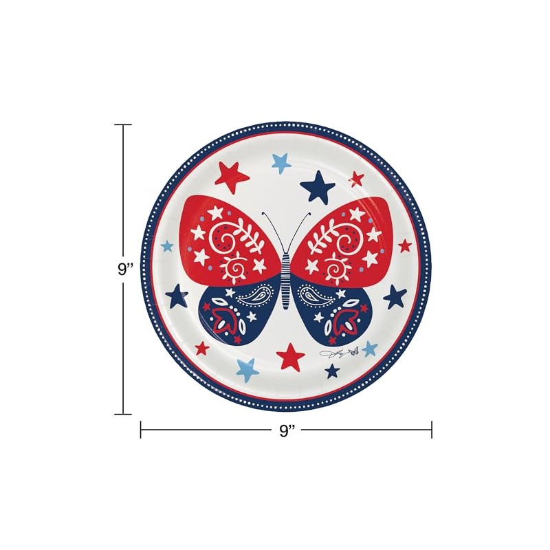 Dolly Parton Patriotic Butterflies Dinner Plates Set, 24 Count
