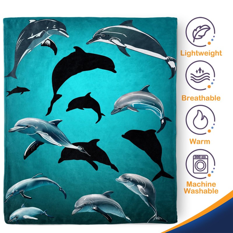 Dolphin Blanket Gifts for Women - Ocean Themed Sea Animal Lover Throw for Kids Men Adults Bedroom Living Room Decor Soft Travel Hiking Camping Birthday Christmas Lightweight Blanket 50"x60"