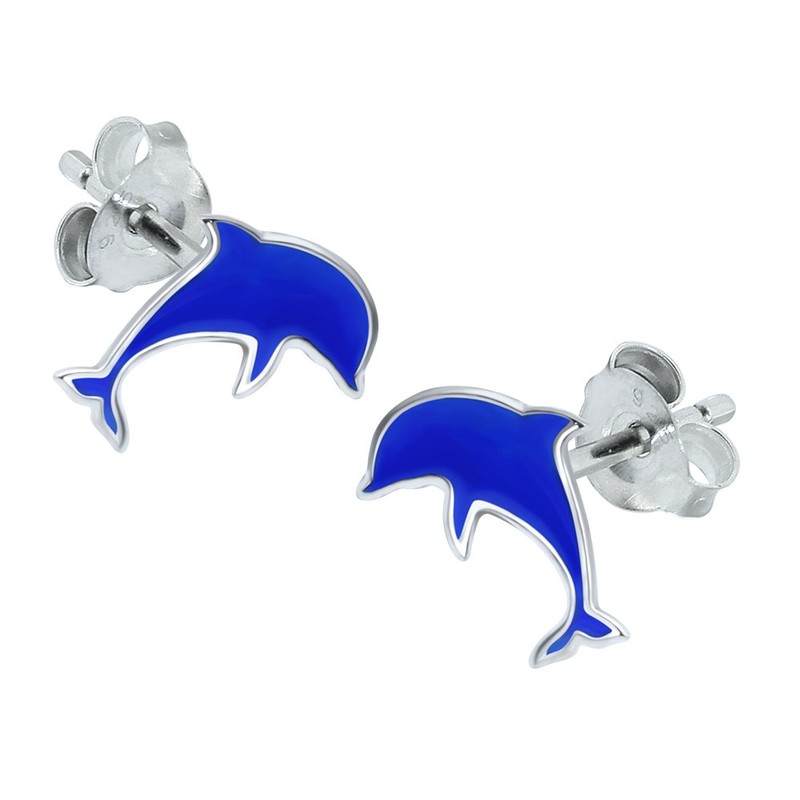 Dolphin Earrings 925 Sterling Silver Blue