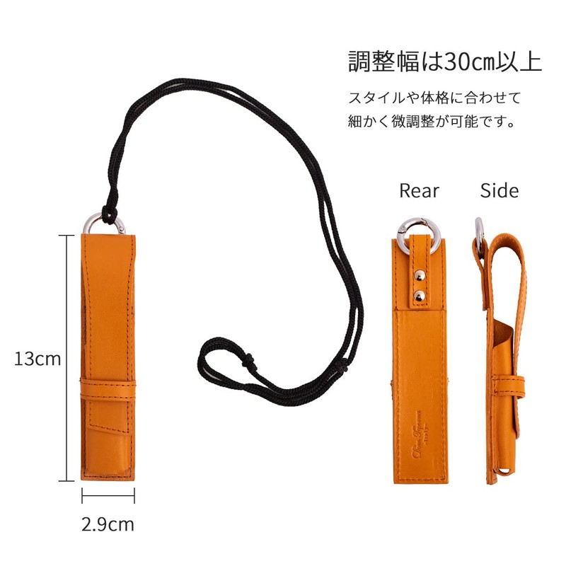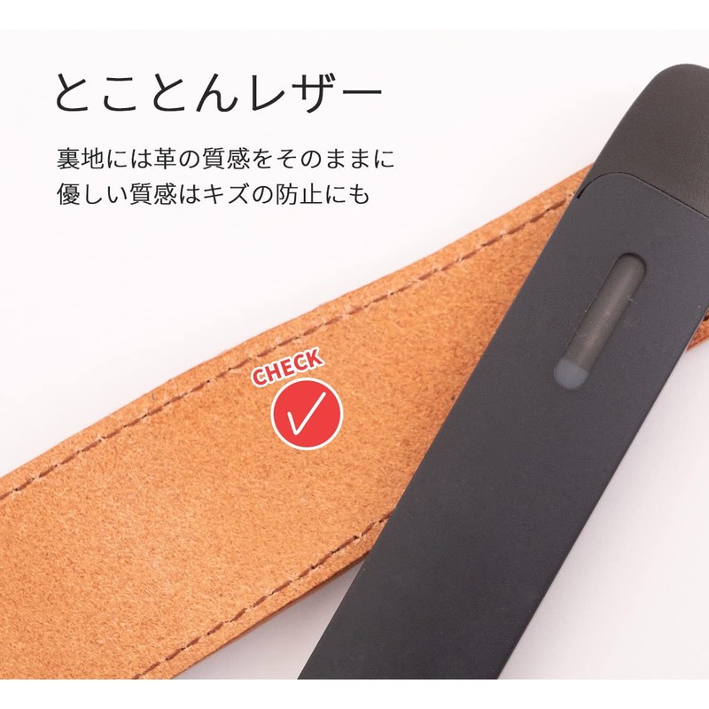 - 【シンプルに持ち運ぶ】 本革製スリーブです。丈夫でしなやかなレザーが本体をしっかり守ります。長さ調節可能な首掛け用のストラップと、丸形カラビナが付属。ストラップを外してベルトループやバッグに取り付けても◎ 使用時はもちろん、充電も装着したまま。