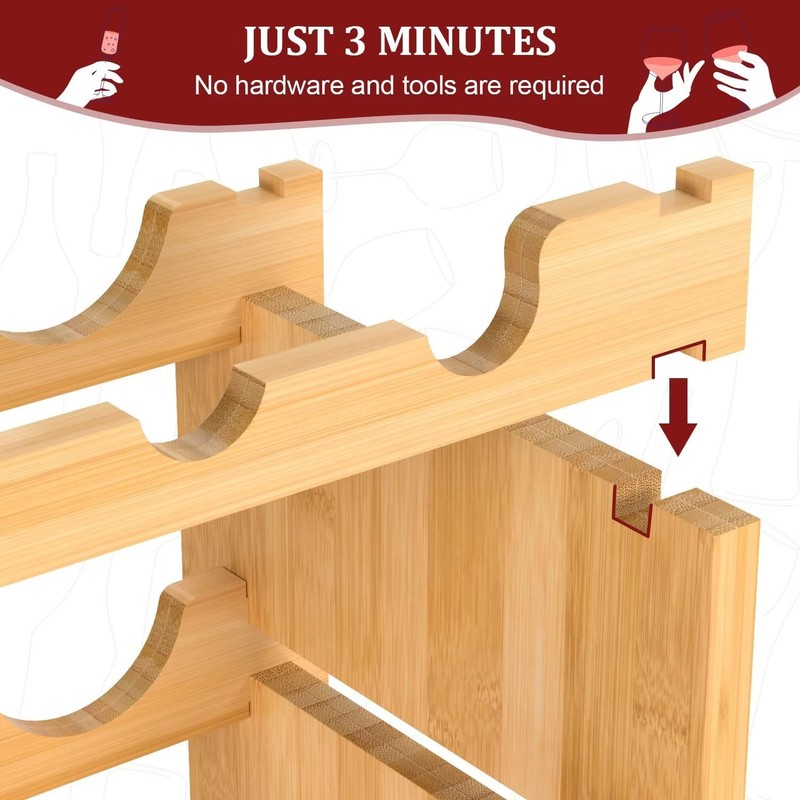 - 🍷EASY ASSEMBLY: No tool intervention is required. Just follow the assembly instructions to combine the partitions in order, and you can have an elegant wine holder in about 3 minutes.