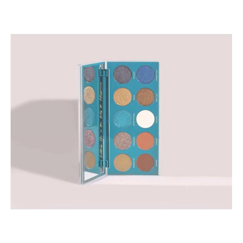 • This palette contains STEPPING OUT: Army green, MESMERIZED: Iridescent Multi Shimmer, LIFE OF THE PARTY: Turquoise Shimmer, DINERO: Eye- Gold Shimmer With Green Reflect, LA NOCHE: Matte Black With Sillver Shimmer Topper, ELEVATED: Matte Chocolate, ESSENTIAL: Warm Cognac Matte, EMBRACE: Cream Matte, AFTER-HOURS: Deep Bronze With Gold Shimmer, MIDNIGHT HAZE: Deep Blue Shimmer