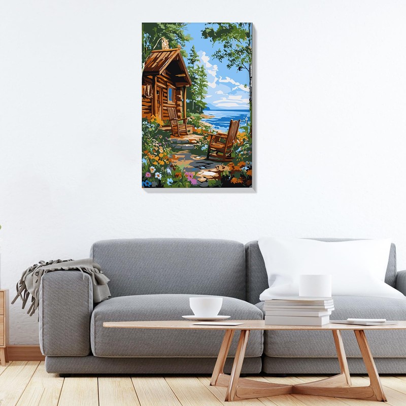 DOMROM Paint by Numbers Kit for Adults Beginner with Wooden Frame, Lakeside Cabin Easy Acrylic Paint by Number, DIY Landscape Oil Painting Kit with Framed Canvas Arts and Crafts for Gift Home Decor