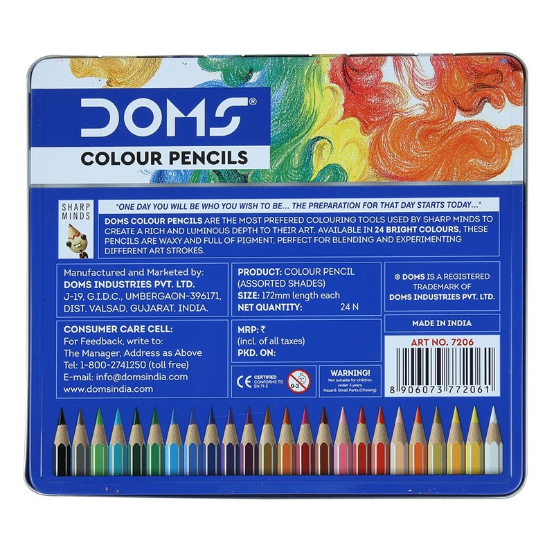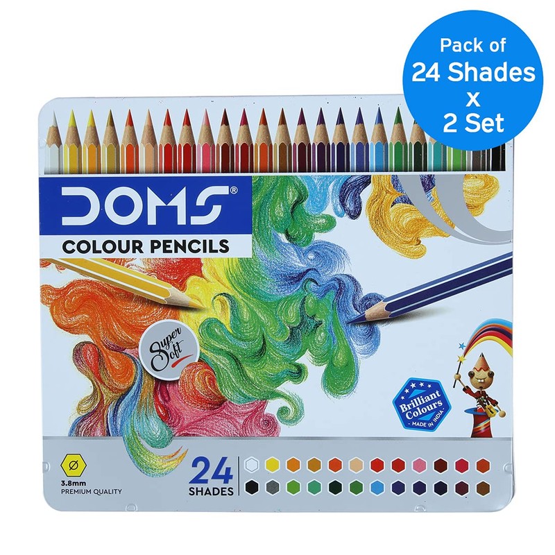DOMS Supersoft Non-Toxic Colour Pencil Set in Flat Tin Box (24 Assorted Shades x 2 Set)