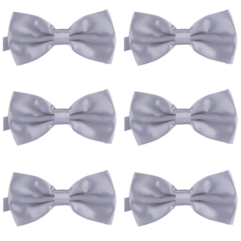 DonDon Set of 6 Men's Bow Ties 12 x 6 cm Tied and Adjustable Length, platinum