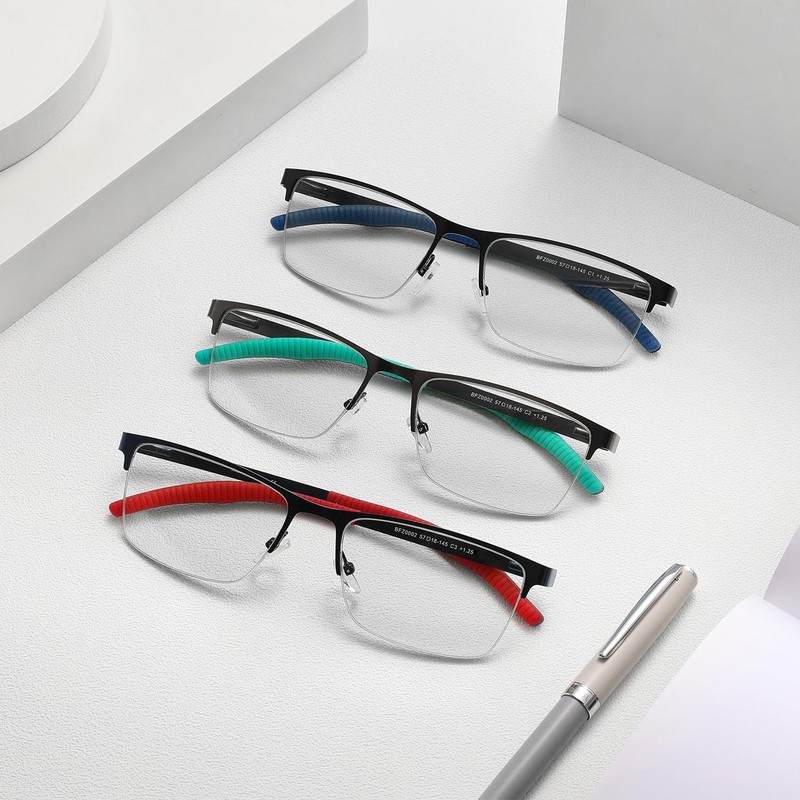 - 【3 PCs Man Metal Frame Readers】 Great value 3 pack Metal Frame reading glasses with 3 different temple colors (green +blue+red), suitable for any occasions. Leave one at home, at work, in your car's glove box, or in your purse, backpack, or carry all to have handy when and where you need them.