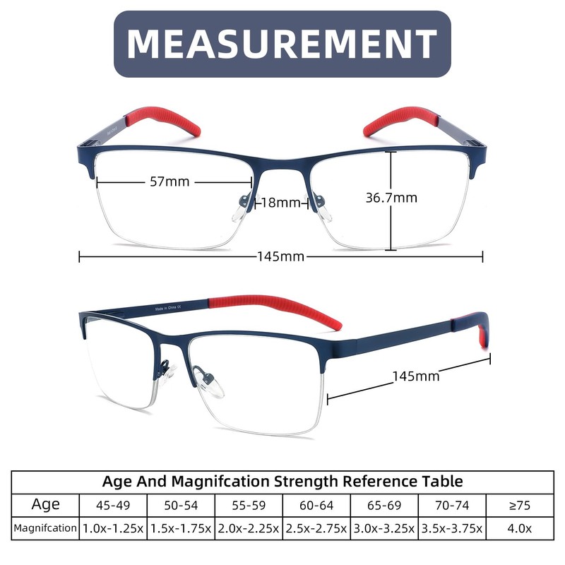 - 【Light Weight Readers for Men】 Our upgraded reading glasses have thinner metal frame, which makes them more lightweight and fashionable. Lightweight metal frame reading glasses with spring hinges ensure a comfortable fit without pinching the face. Classic rectangular half-frame design, suitable for men, puts no pressure on the nose.