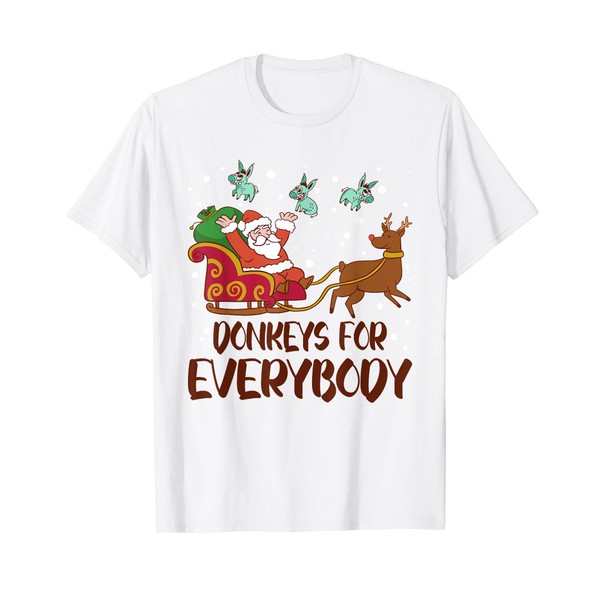 Donkeys For Everybody Funny Christmas Santa T-Shirt, White