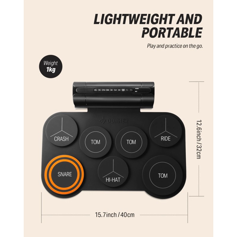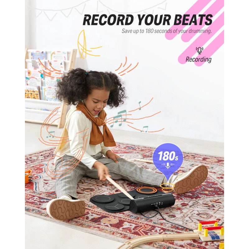 Donner DED-20 Electronic Drum Set 7 Pads Electric Drum Roll Up Built-in Speaker