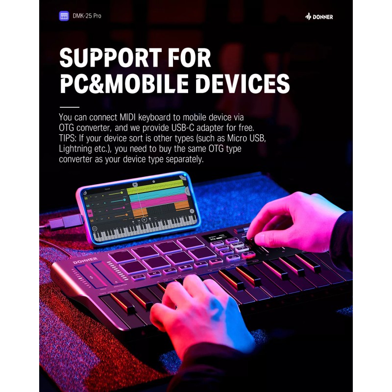 - 【 Compatibility 】The beat machine STARRYPAD is class compliant to work with everything and comes with a standard USB C power supply and data interface for easy plug and play. (Tips: if you want to connect to your iPhone or iPad, you need to buy an Apple Lightning to USB Adapter) The additional MIDI in/out (Cable included) allows you to connect to an external synthesizer or other vintage MIDI equipment.
