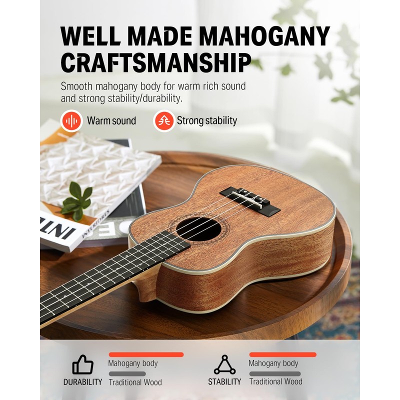 - Warm Rich Sound: Mahogany ukulele body and neck bring you much richer, brighter and warmer sound; High density bone nut and saddle combine with 4 advanced Aquila carbon nylon strings to gain clear and nice resonance and more sustain from Mahogany body.