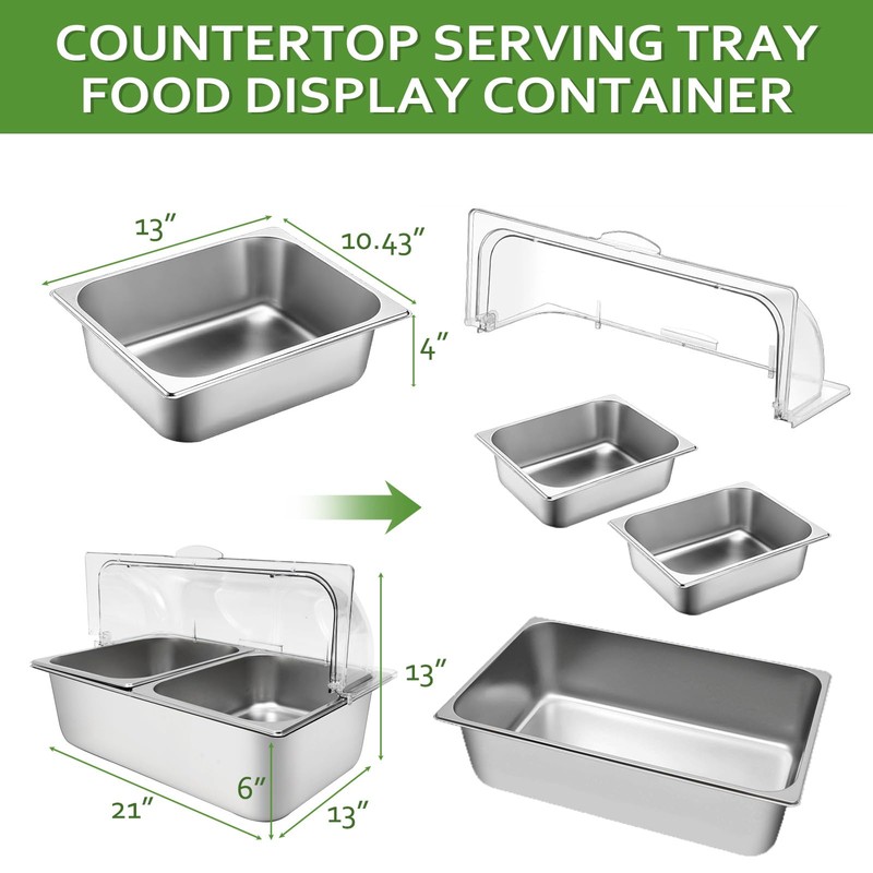 - Easy to Use & Maintain - Constructed from durable and safe stainless steel, the food display containers are easy to clean and maintain. Their detachable design enables thorough cleaning, and when not in use, the set can be disassembled and stored compactly. This reusability makes it a sustainable choice for your service needs.