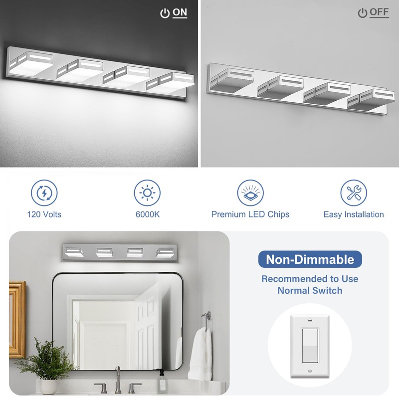 - Ready-to-Install: This bathroom vanity lights over mirror is a fully assembled wall mount light fixture indoor. Mount it directly using included hardware - follow the instructions and enjoy bright bathroom lighting immediately