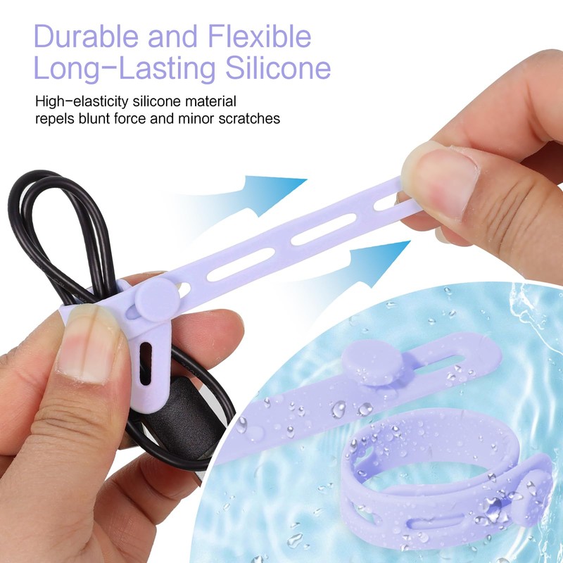 - 【4 Lengths Adjustable & Versatile】The silicone cable manager measures 5.12" (L) x 0.47" (W) and accommodates cables with diameters ranging from Φ0.47" to Φ1.13", thanks to its 4 adjustment holes. These cord organizer cable ties are both versatile and durable, making them perfect for use in the kitchen, home, office, car, and during travel. Use them to organize clothes hangers, bundle curtains, umbrellas, and more. They offer a flexible yet sturdy solution for all your cable management needs.